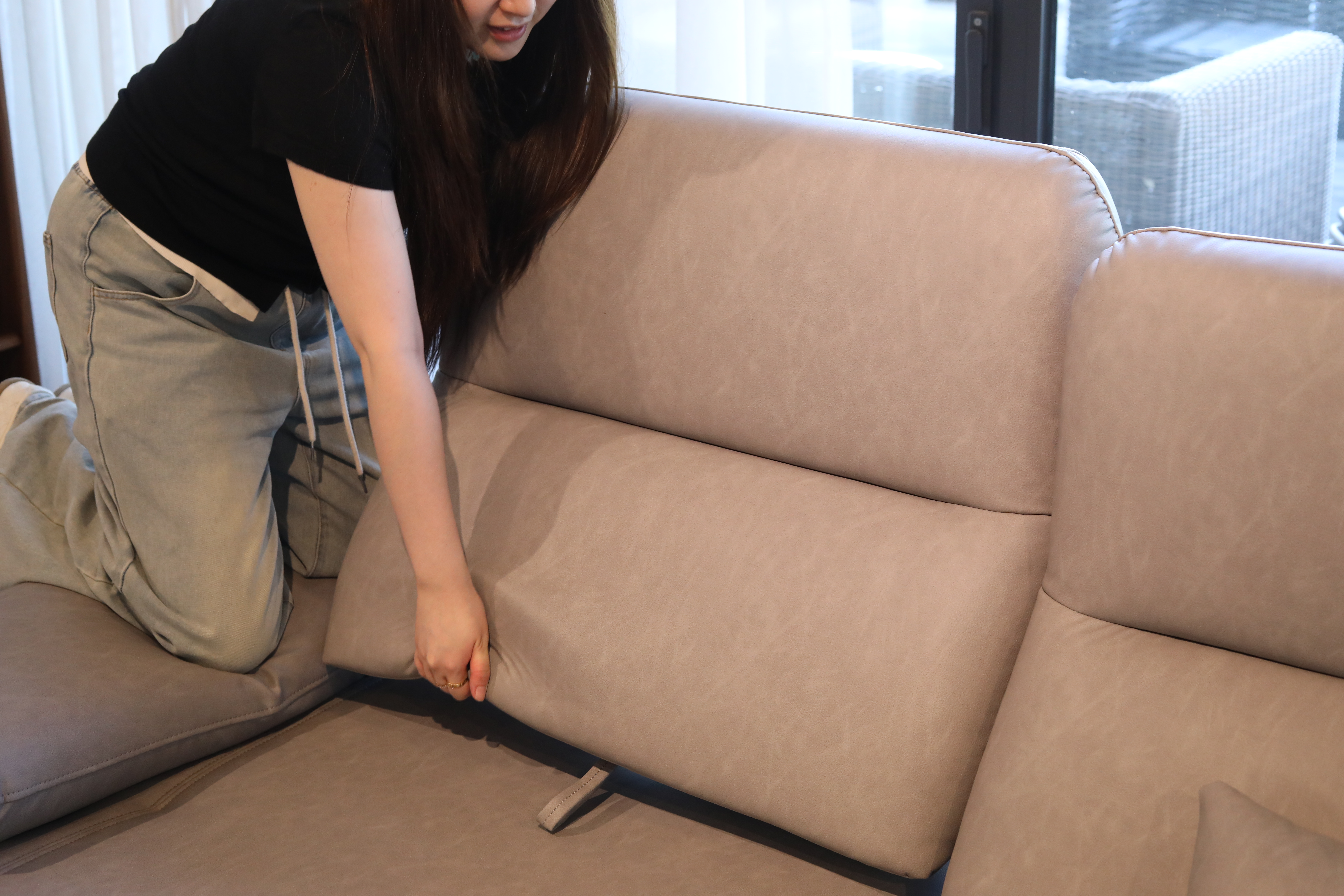 고급스러운 소재는 어떤 인테리어 공간에도 자연스럽게 어우러지며, 내구성과 오염 방지 기능까지 갖춰 실용성 또한 뛰어나다. 무광 블랙 메탈 다리로 마감되어 현대적인 세련미를 더하며, 넓은 공간감을 확보한 구성은 거실의 분위기를 바꿔줄만한 멋진 제품이 될 것입니다.